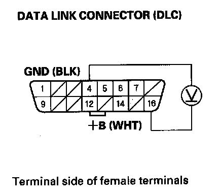 26. Measure voltage between DLC terminals No. 4 and No. 16.