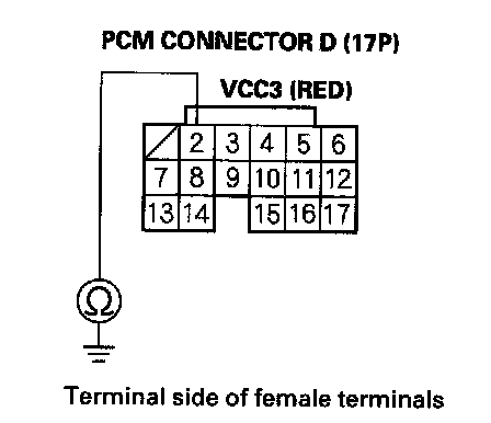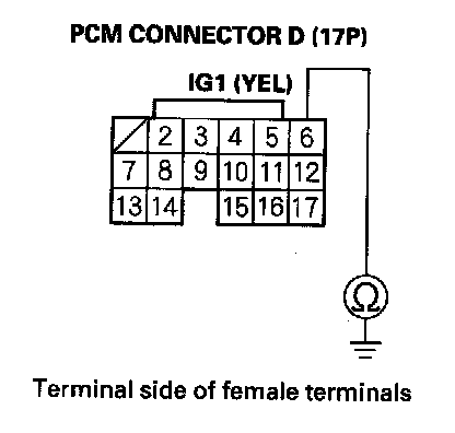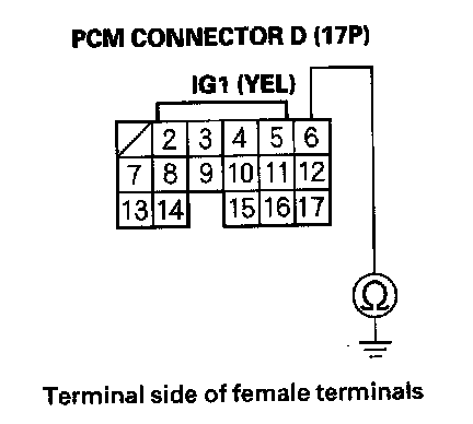 48. Check for continuity between PCM connector terminal D6 and body ground.