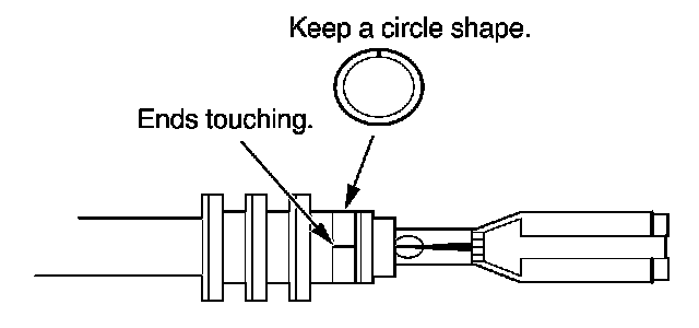 3. Strip the insulation off the end of the wire so the wire fits in the new terminal as shown. (If the wire has a wire seal, replace it with a new one from the kit.)