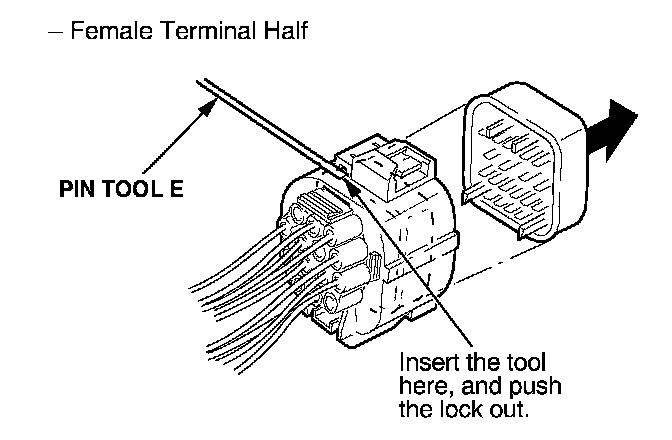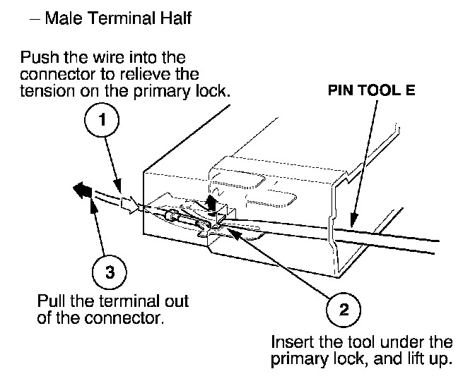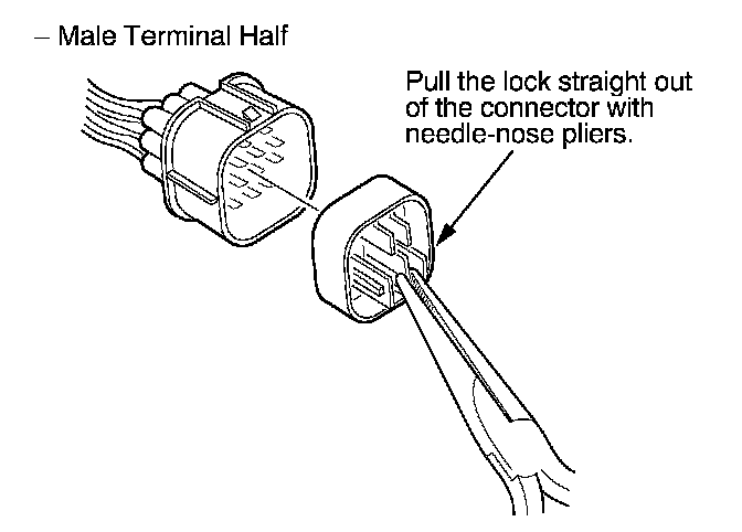 3. Remove the terminal from the male half. Male Terminal Half