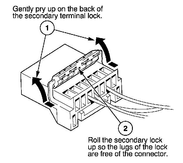 - If it has a secondary terminal lock, go to Connectors With a Secondary Lock. A secondary lock, found on most connectors on some models, is an additional locking device on the connector housing as a backup for the primary lock on the terminal.