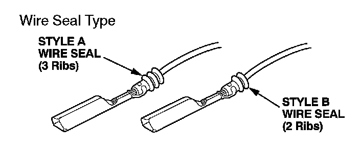 Select the proper size pigtail terminal by matching the replacement terminal part number and the wire size being repaired to the corresponding pigtail terminal part number. Then use the color (size) splice connector listed. In some instances you may also have to match the wire seal style to select the proper pigtail terminal. Pigtail terminals are available through your parts department, in quantities of 10, using normal parts ordering procedures.
