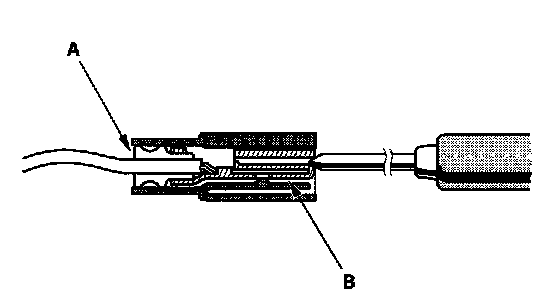 3. If you cannot get to the wire side of the connector or the wire side is sealed (A), disconnect the connector and probe the terminals (B) from the terminal side. Do not force the probe into the connector.