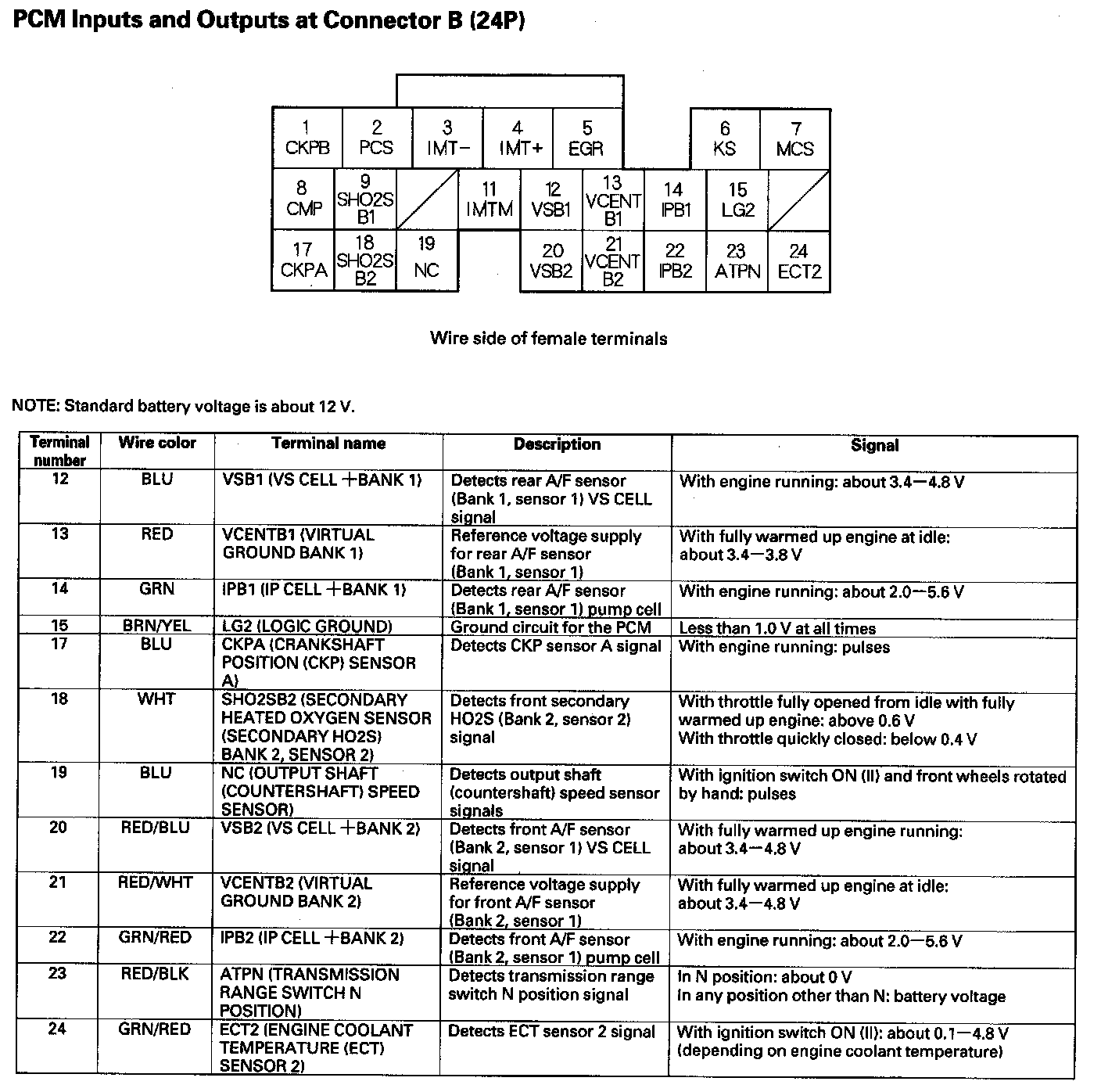 PCM Inputs And Outputs At Connector B (24P) Part 2:
