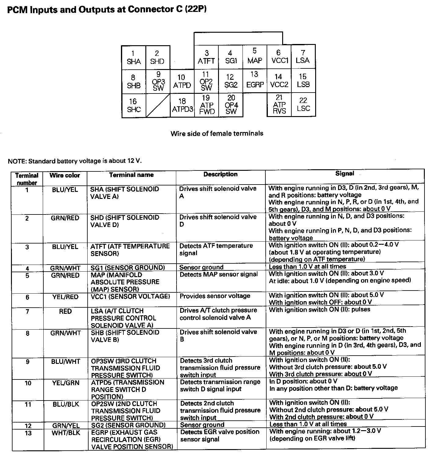 PCM Inputs And Outputs At Connector C (22P) Part 2: