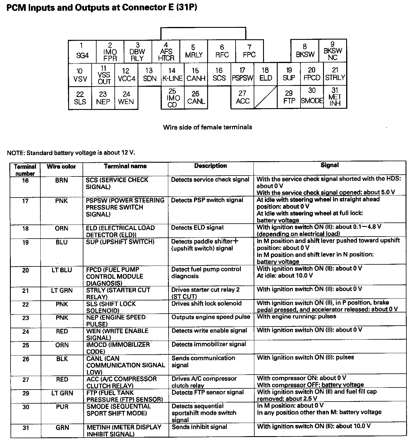 PCM Inputs And Outputs At Connector E (31P) Part 2: