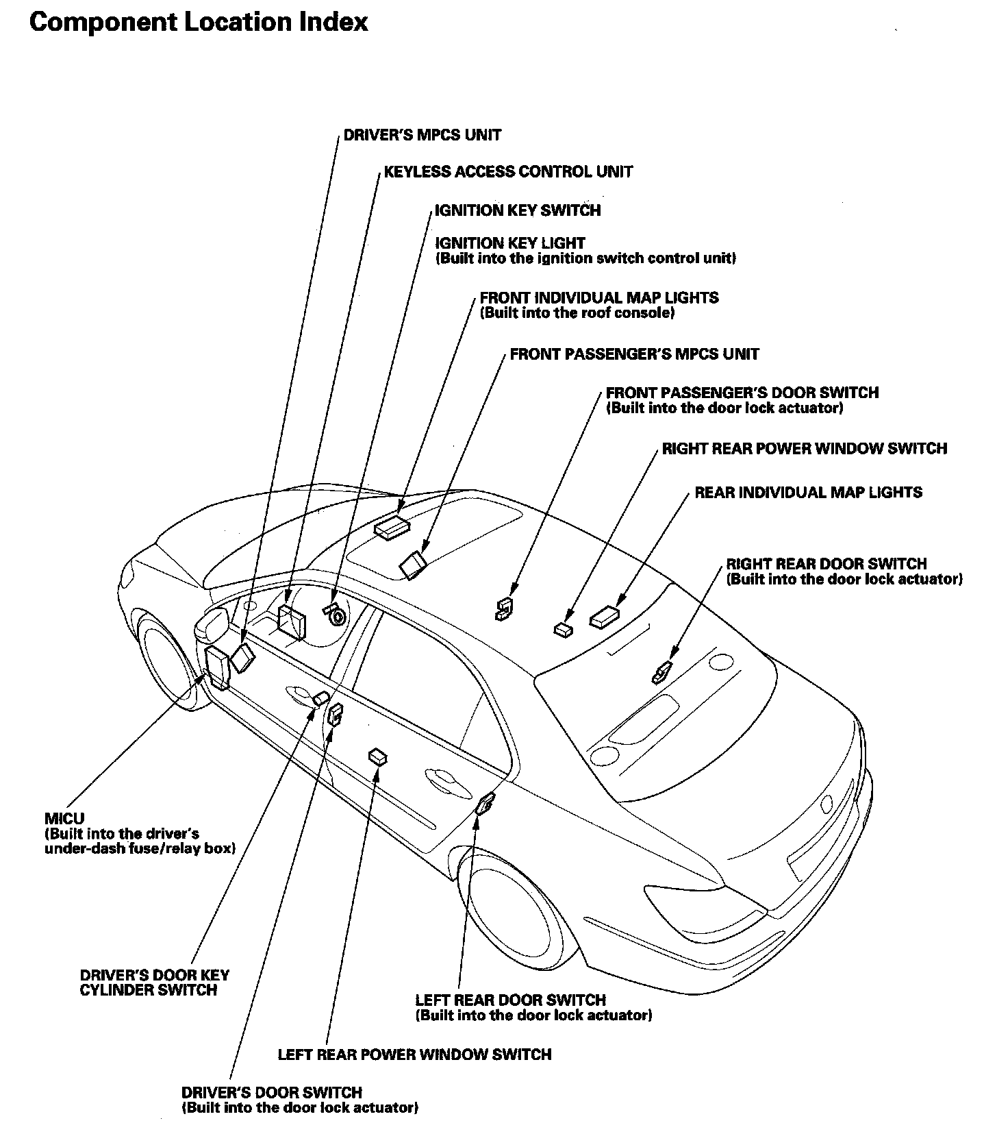 Keyless/Power Door Locks/Security System Component Location Index: