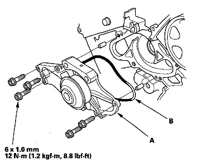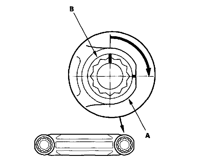 Torque the bolts (B) 20 N-m (2.0 kgf-m, 14 lbf-ft) +90°