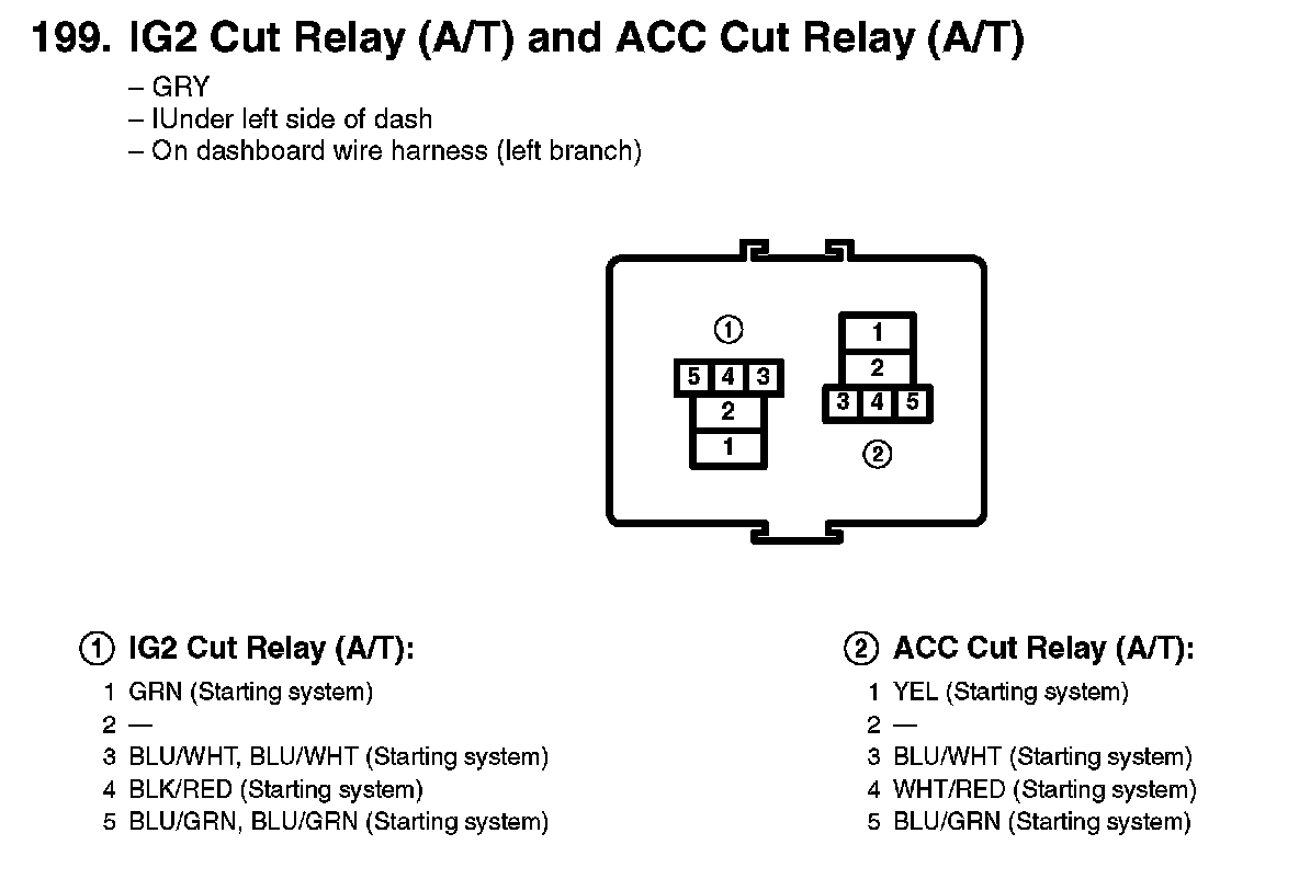 199. IG2 Cut Relay (A/T) And ACC Cut Relay (A/T):