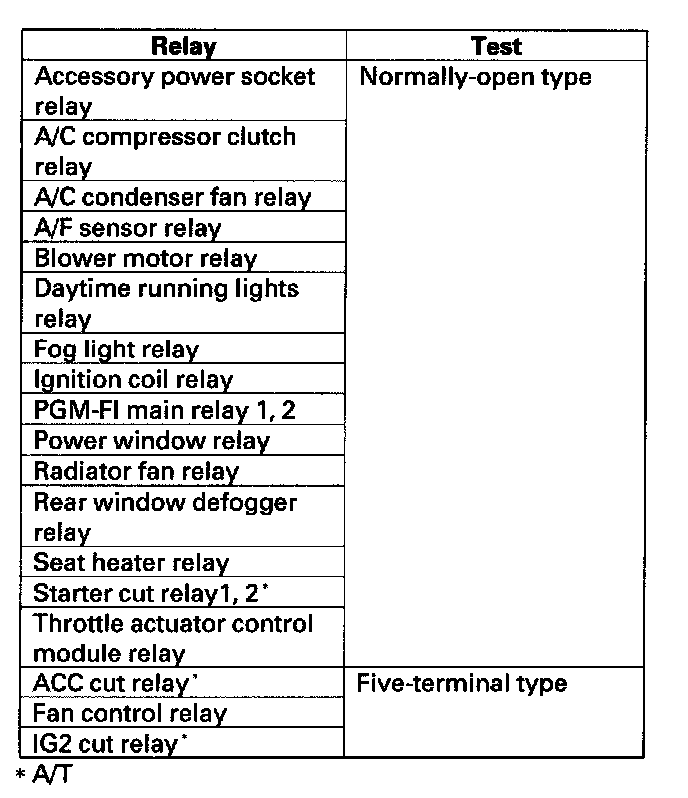 Power Relay TestUse this chart to identify the type of relay, then do the test listed for it.