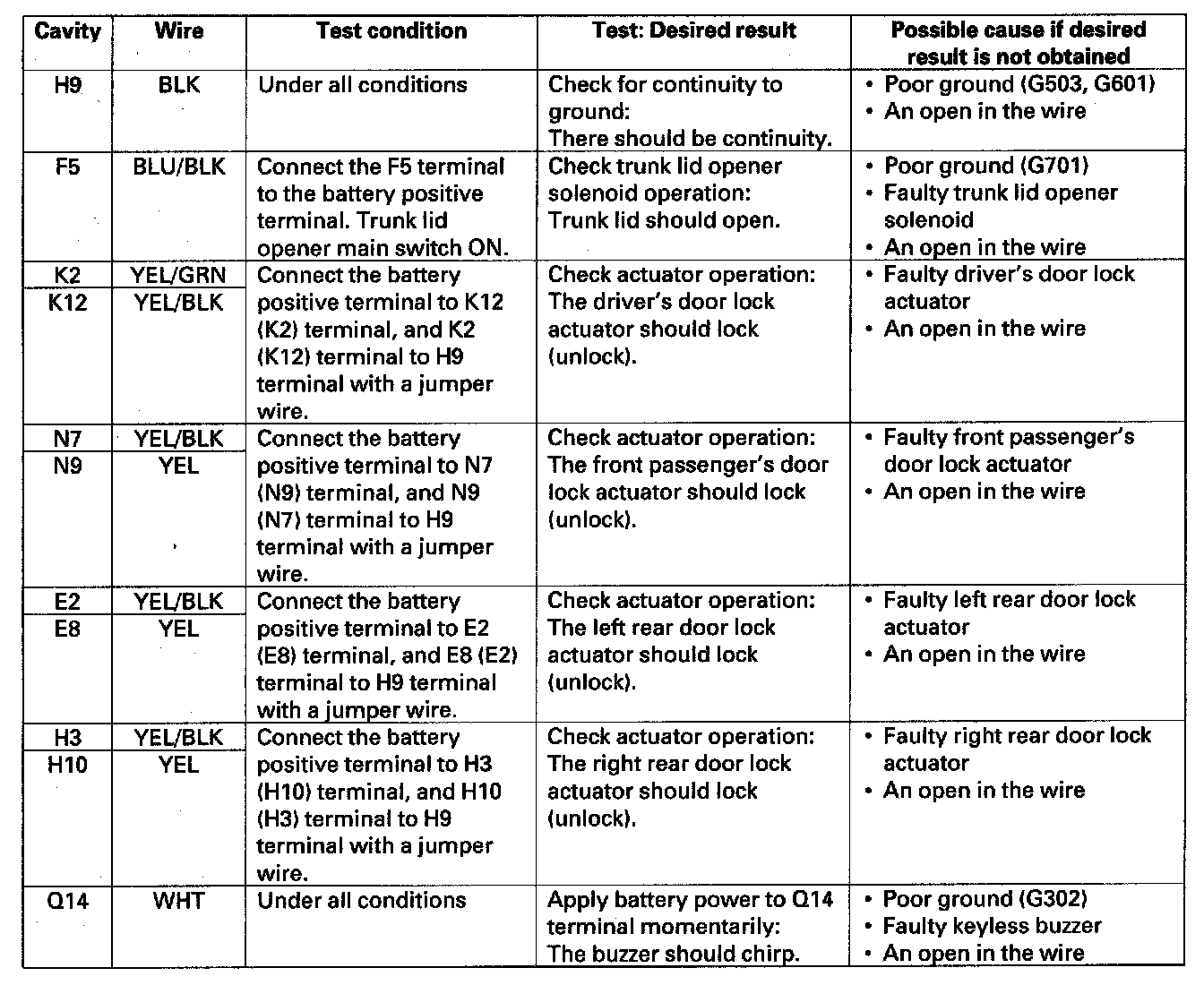Control Unit Input TestNOTE: Before testing the keyless entry/security control system, troubleshoot the multiplex integrated control system.