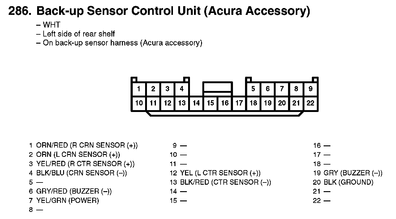 286. Back-up Sensor Control Unit (Acura Accessory):