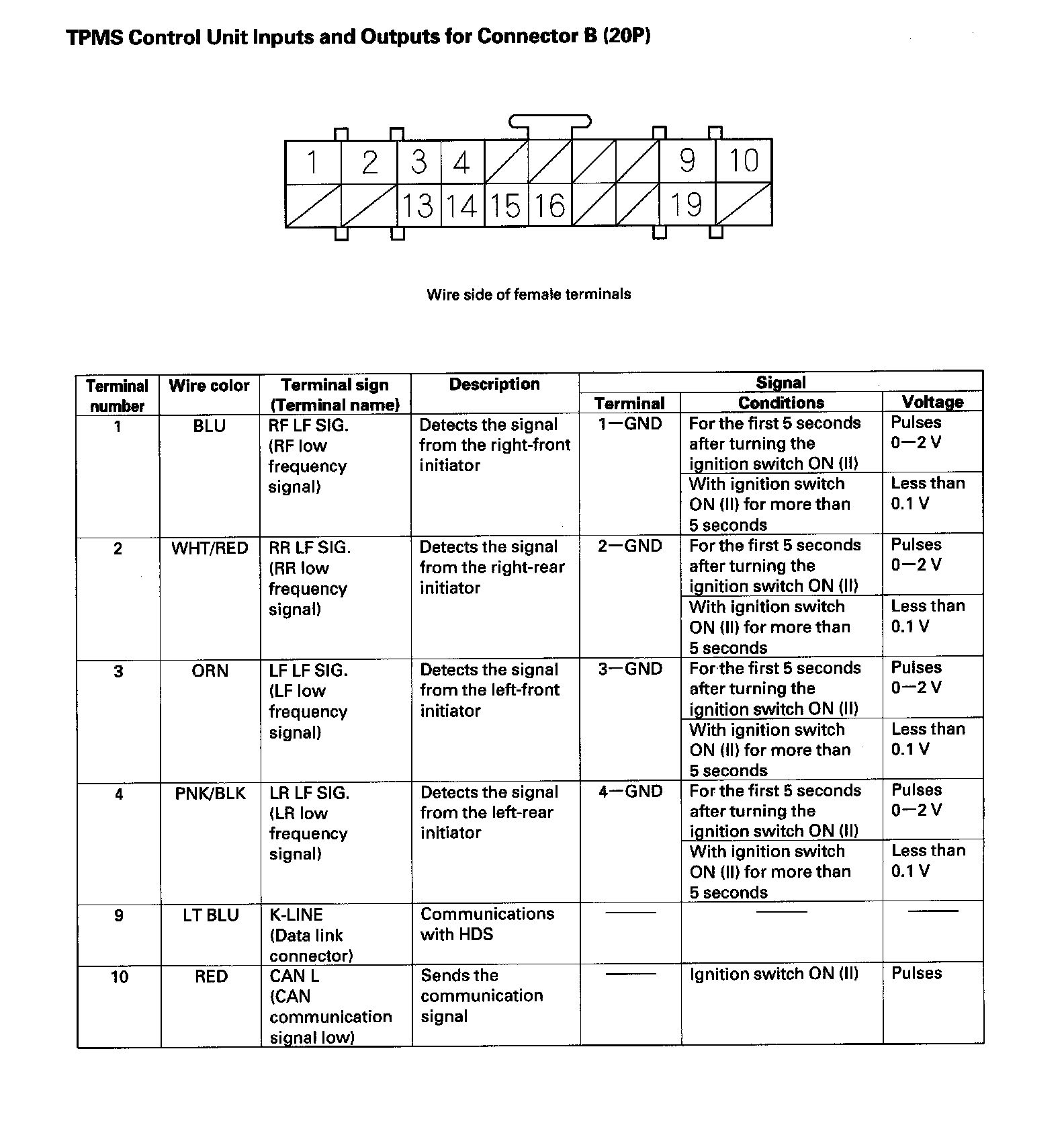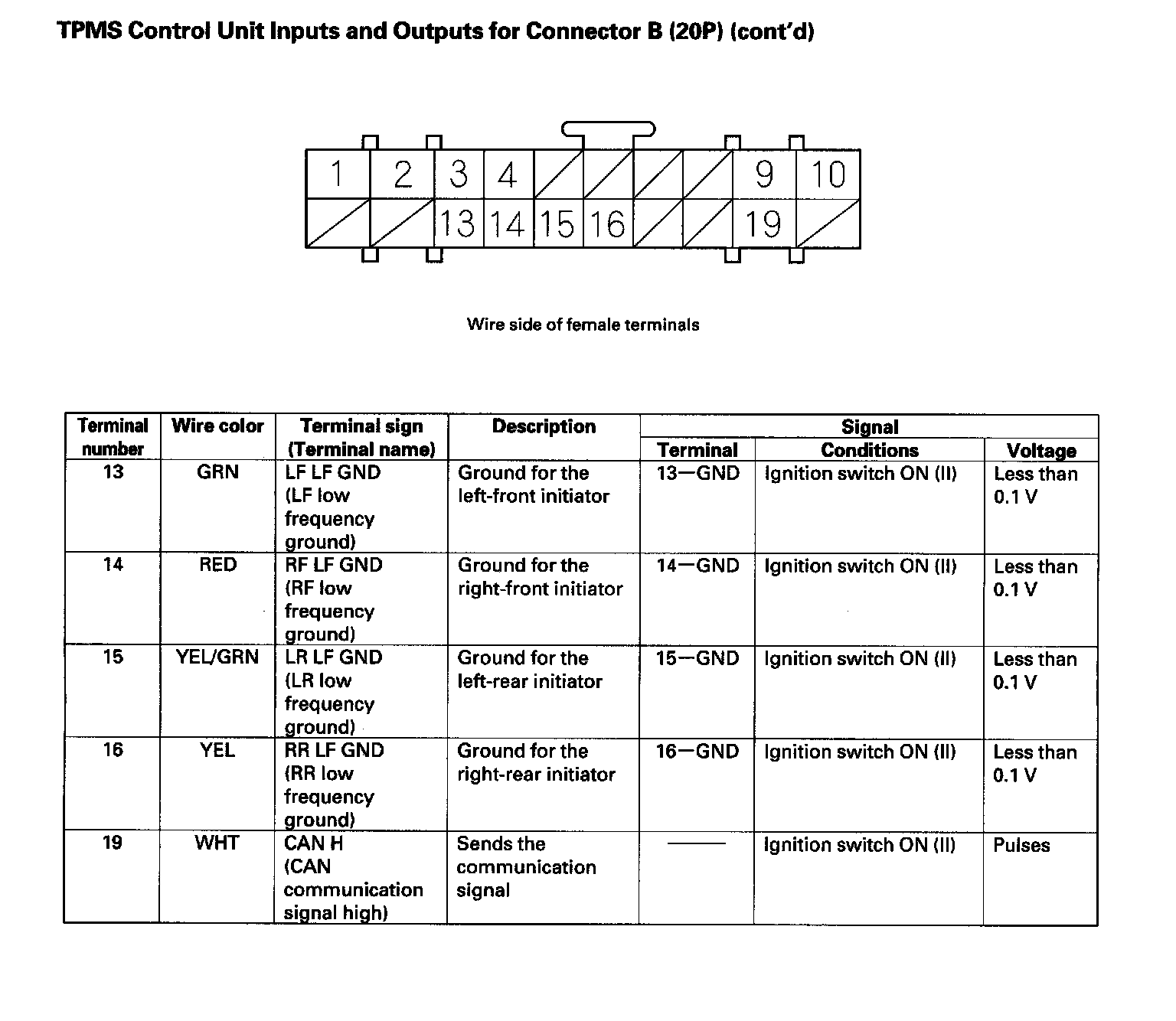 TPMS Control Unit Inputs and Outputs for Connector B (20P) (Part 2):