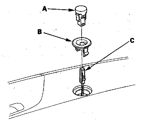 1. Remove the sunlight sensor (A) from the sunlight sensor garnish (B), then disconnect the 2P connector (C). Be careful not to damage the sensor and the dashboard.