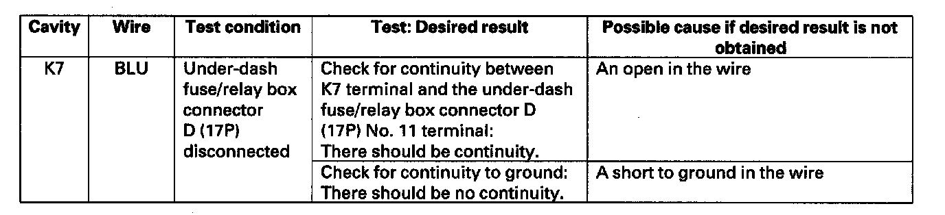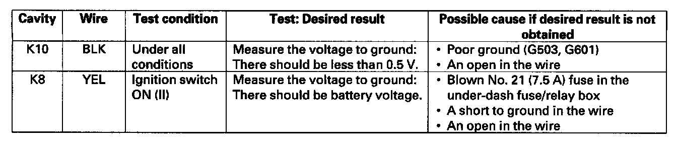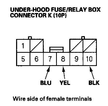 2. Disconnect under-hood fuse/relay box connector K (10P).