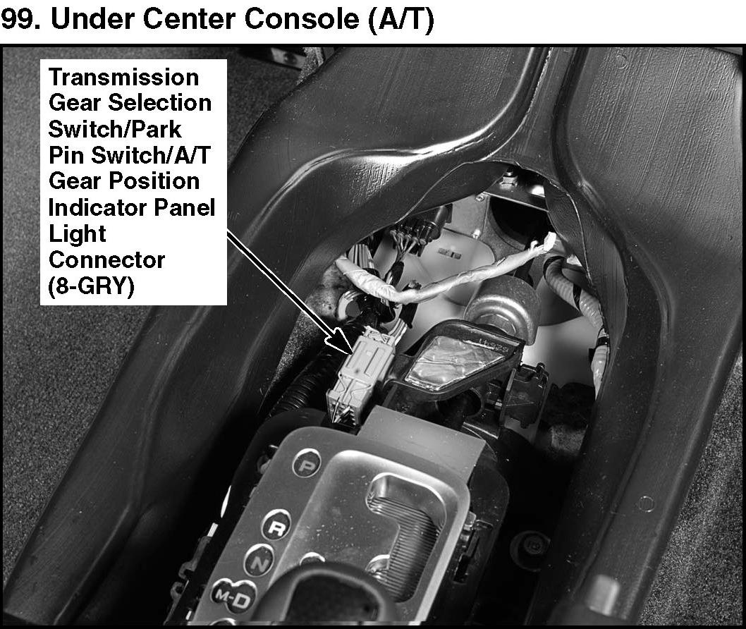 99. Under Center Console (A/T):
