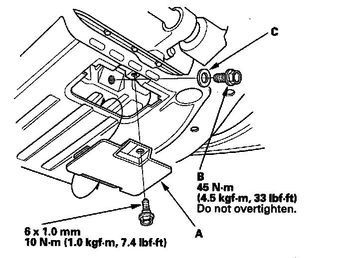 4. Reinstall the drain bolt with a new washer (C).