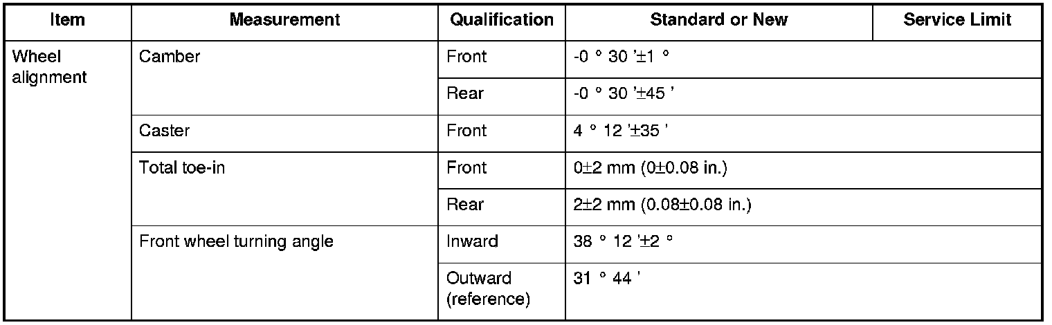 Wheel alignment Specifications