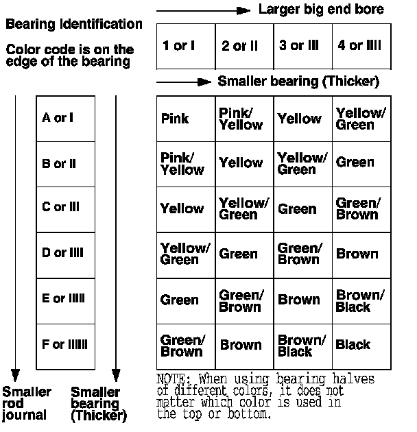 Connecting rod bearing size codes