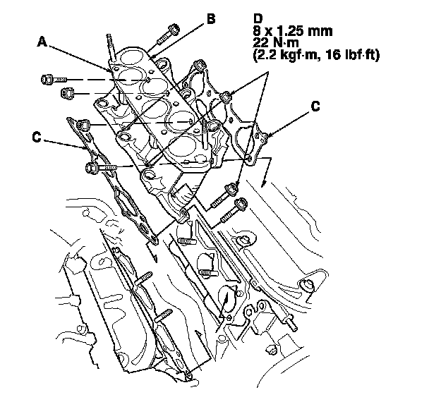 Intake manifold componentsInjector Base 22 Nm (2.2 kgf-m, 16 ft lb)