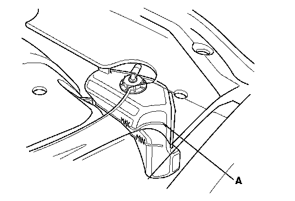 8. Fill the coolant reservoir to the MAX mark (A) with Acura Long Life Antifreeze/Coolant Type 2 (P/N OL999-9011A).