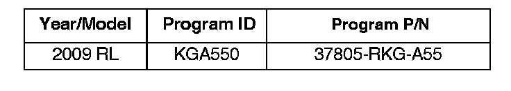 On some 2009 RLs with Tech Package (VINs JH4KB266.9C000001 thru JH4KB266.9C002248) you must disconnect the AcuraLink control unit 5P update connector before updating the PCM. For more information, including additional warranty flat rate time, refer to Service Bulletin 09-009, Disconnect the AcuraLink Update Connector Before Updating the PCM.