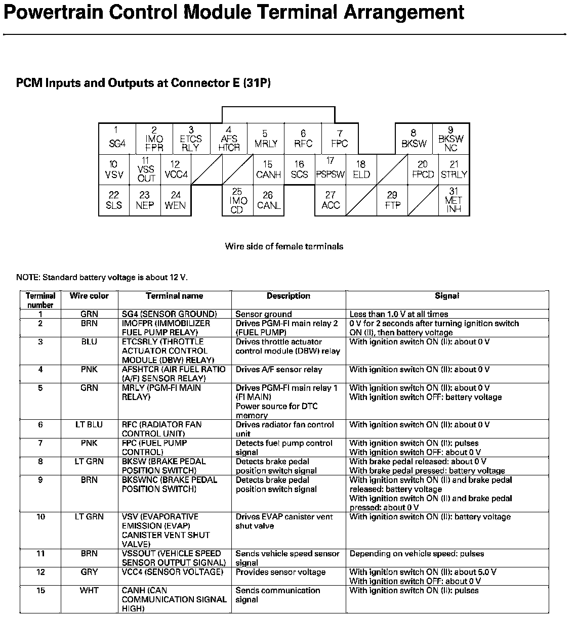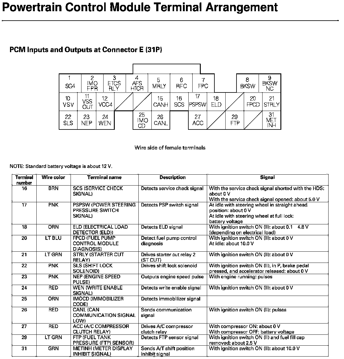 PCM Inputs And Outputs At Connector E