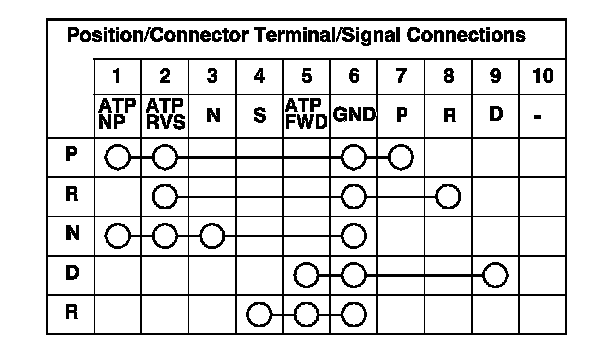 If there is no continuity between any terminals, check that the transmission range switch installation. If the switch installation is OK, replace the switch. Transmission Range Switch Replacement