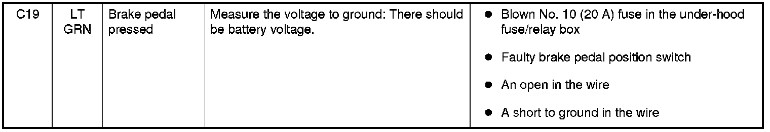 12. Reconnect the connectors to the power control unit, and do these input tests at the following connectors.