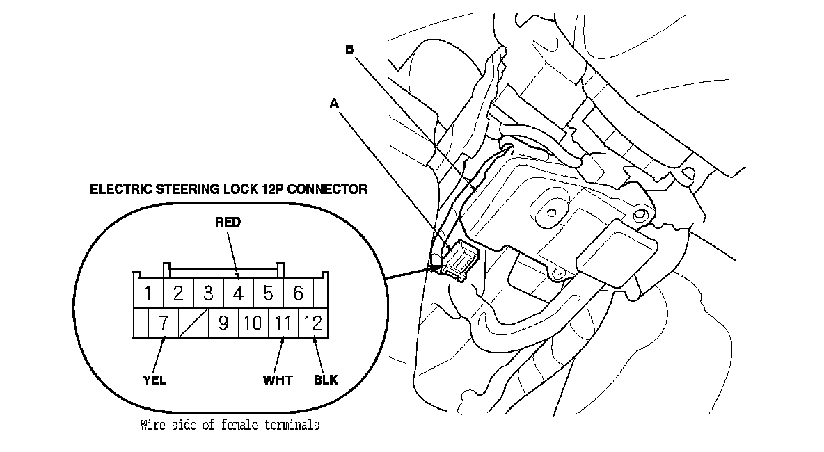 17. Reconnect the connector to the electric steering lock, and do these input tests at the following connector.