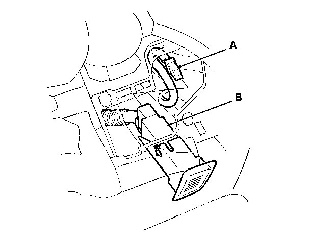 3. Disconnect the connector (A) from the Humidity/in-car temperature sensor (B).