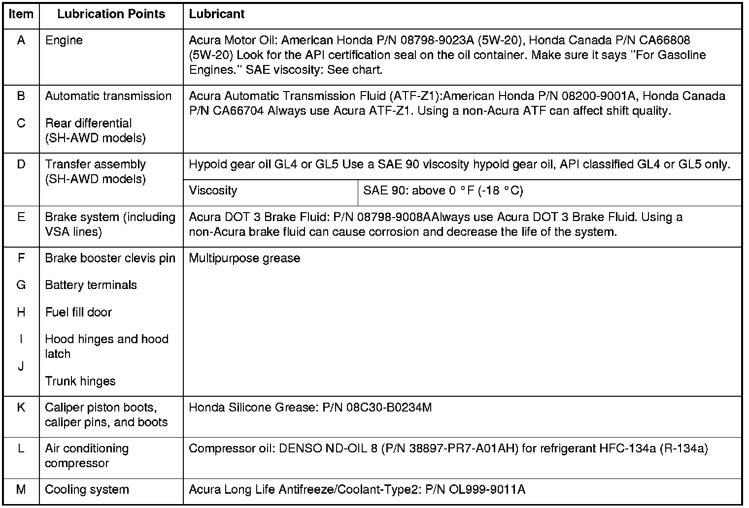 Home >> Acura >> 2009 >> TL FWD V6-3.5L >> Repair and Diagnosis >> Maintenance >> Fluids >> Specifications