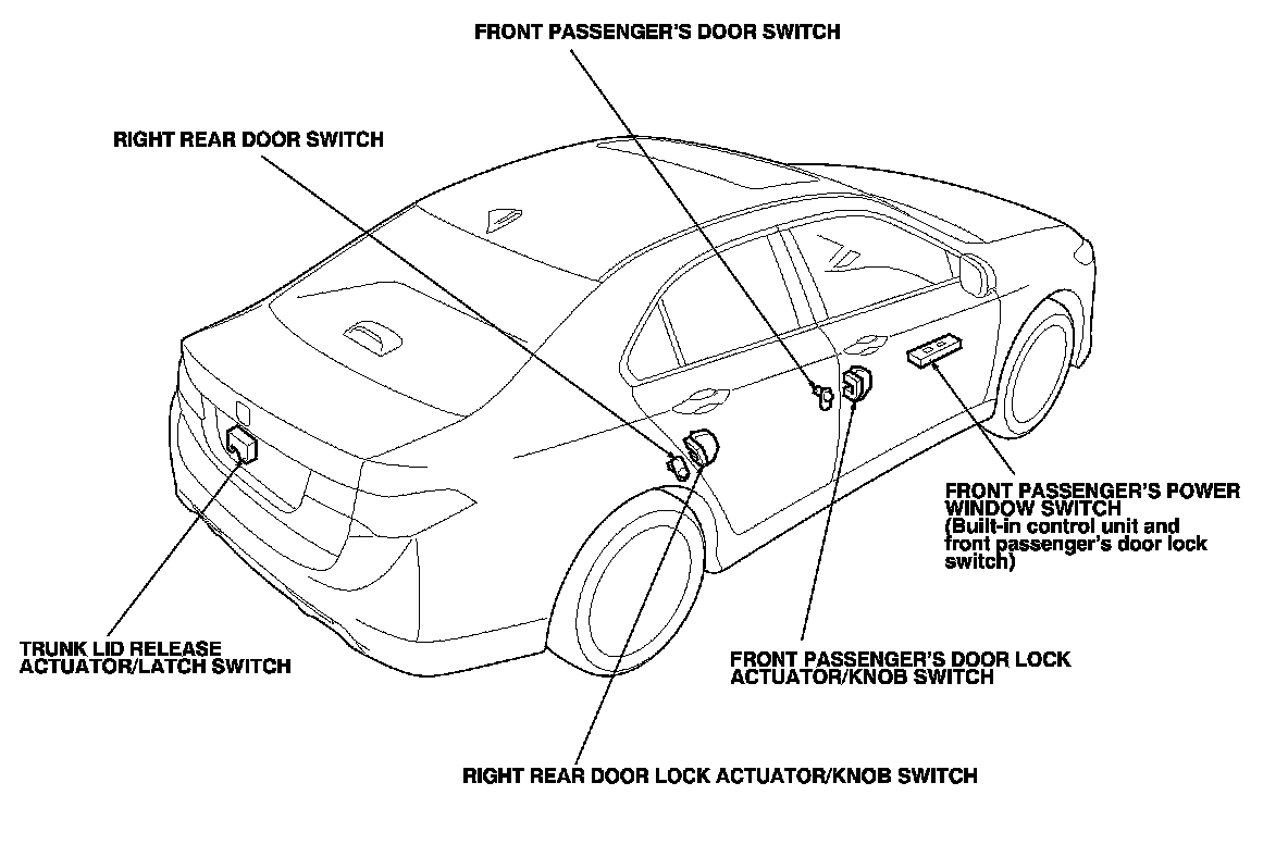 Keyless/Power Door Locks/Security System Component Location Index