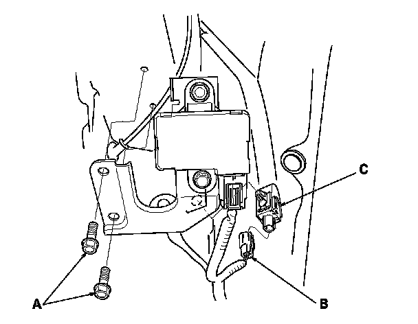 3. Disconnect the 2P connector (B) from the keyless buzzer (C).