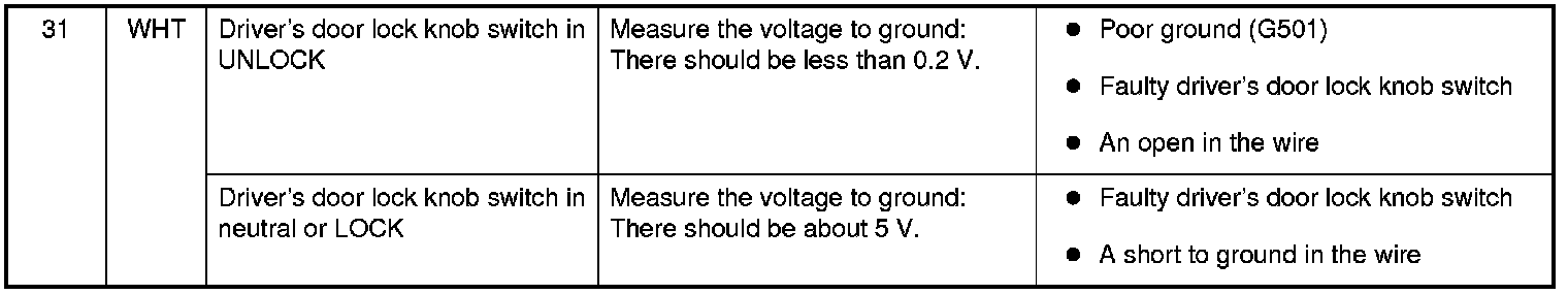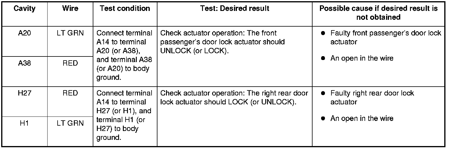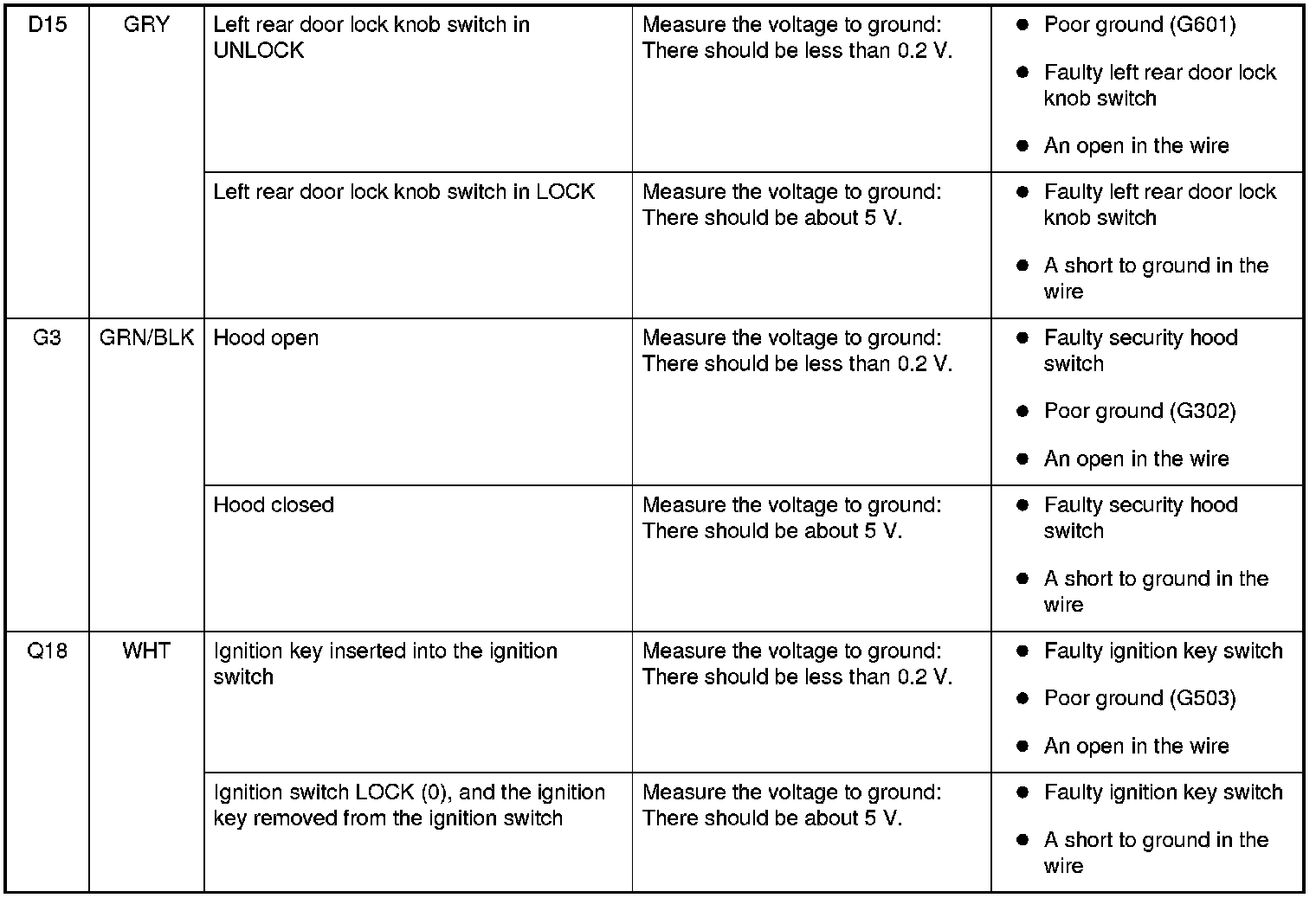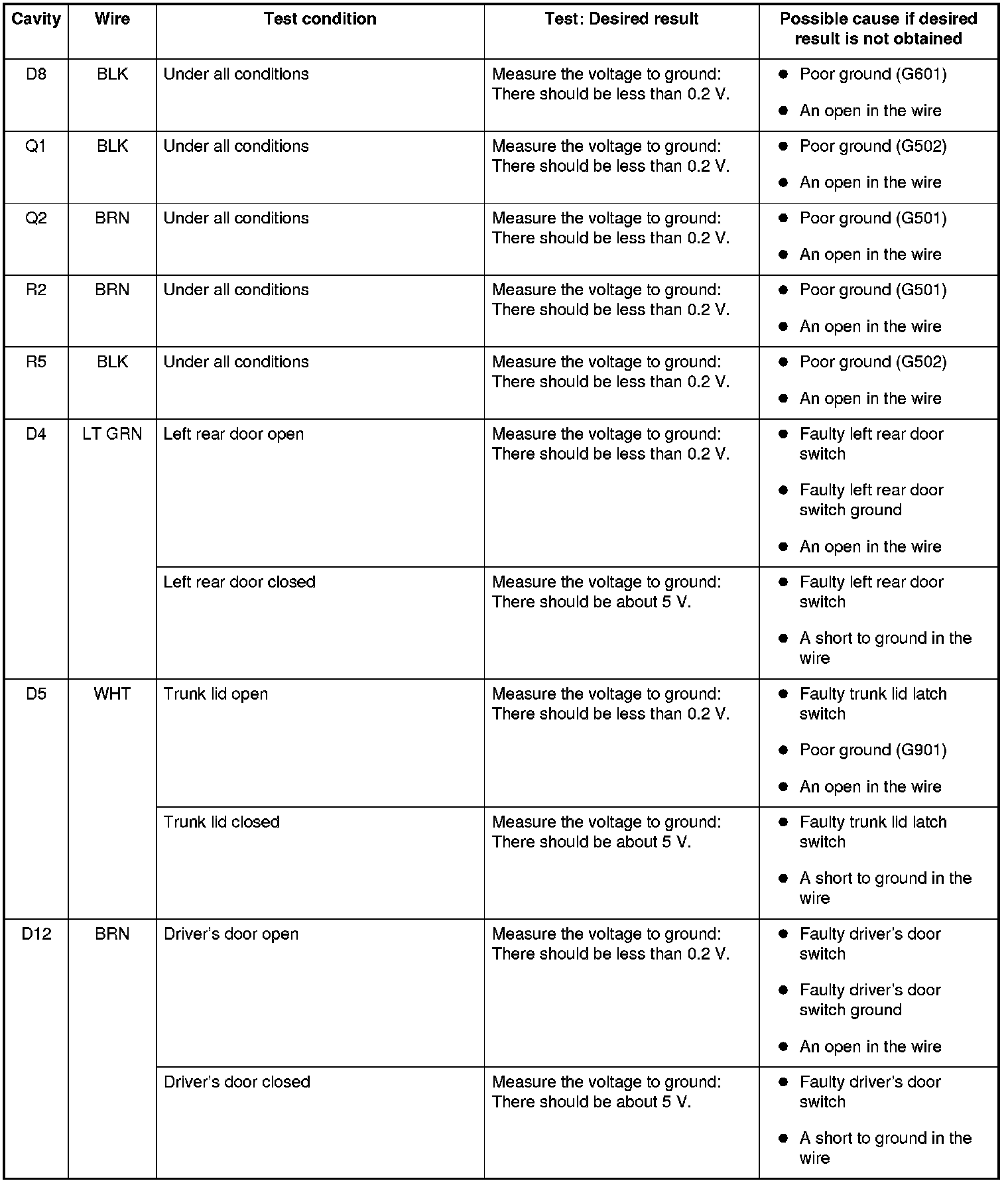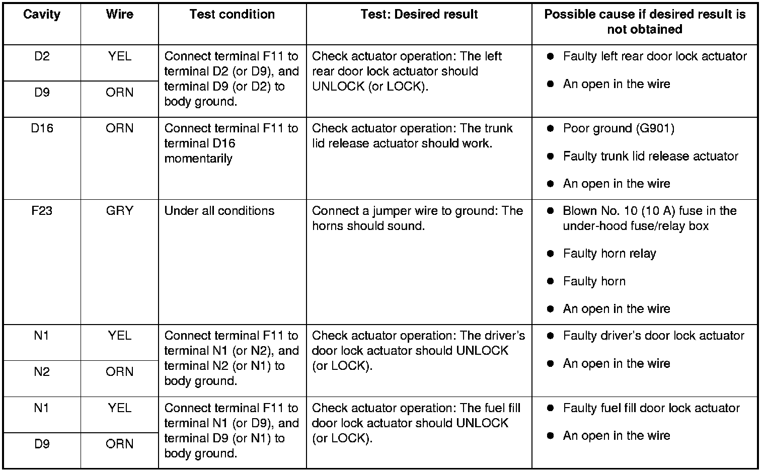 Keyless/Power Door Locks/Security System Control Unit Input Test