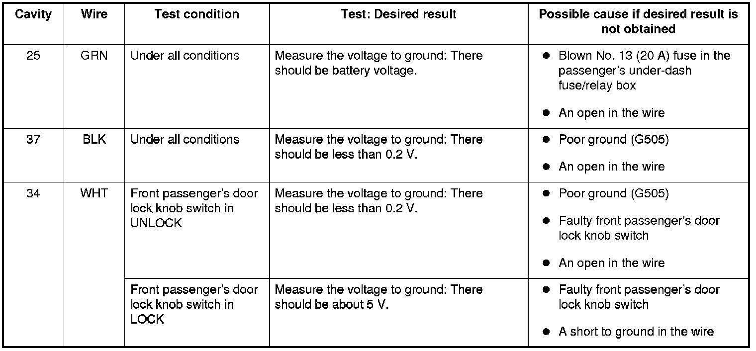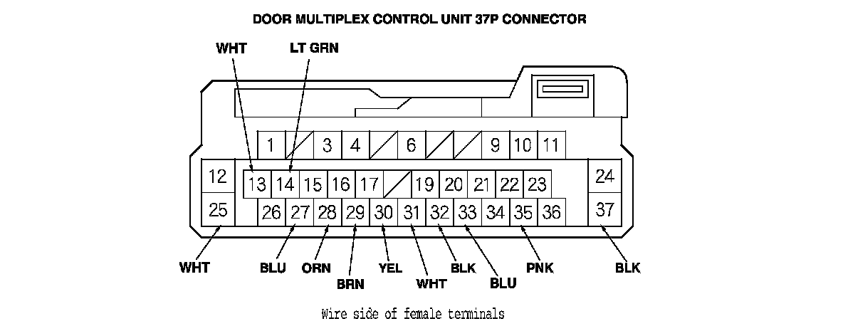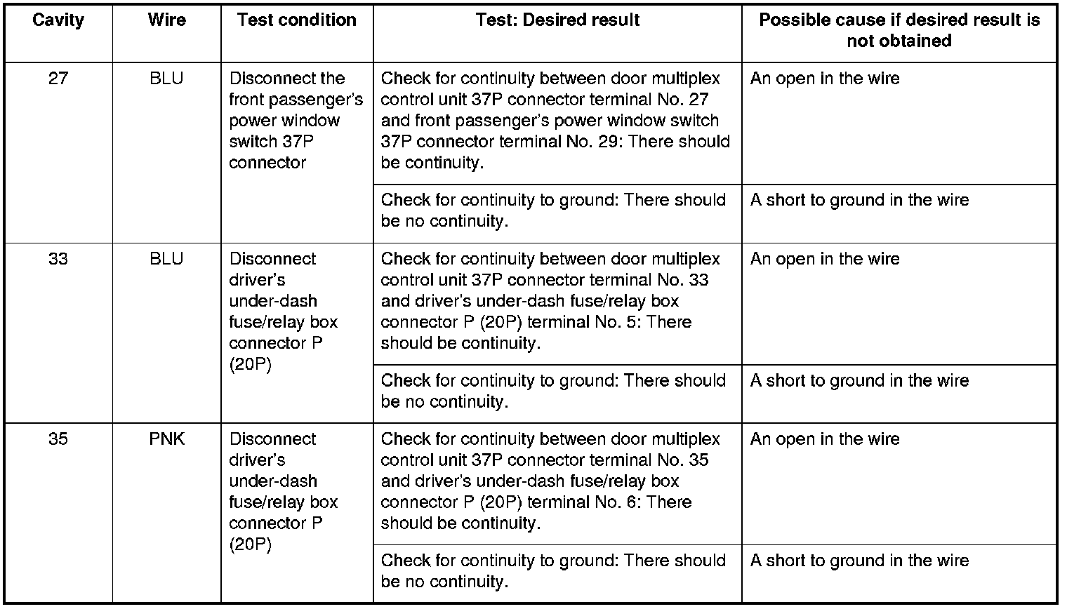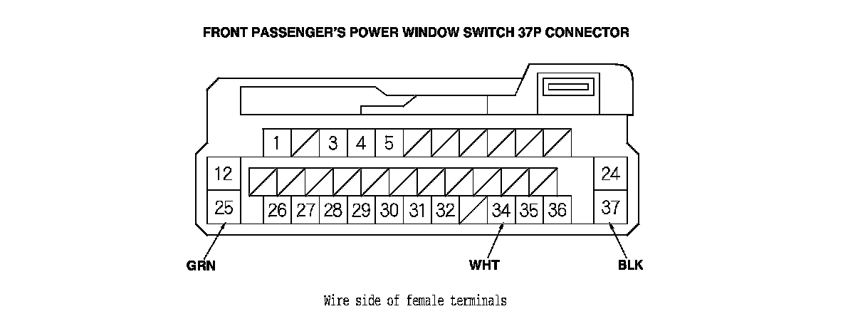 20. Reconnect the 37P connector to the front passenger's power window switch, and do these input tests at the connector.