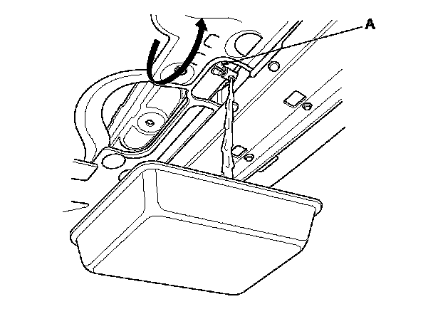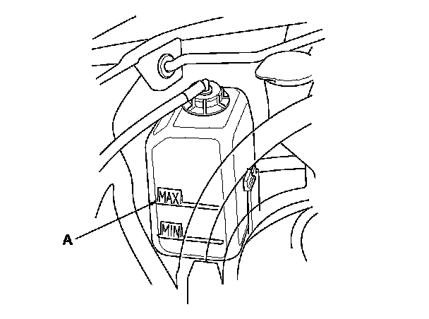 5. Fill the coolant reservoir to the MAX mark (A) with Acura Long Life Antifreeze/Coolant Type 2.
