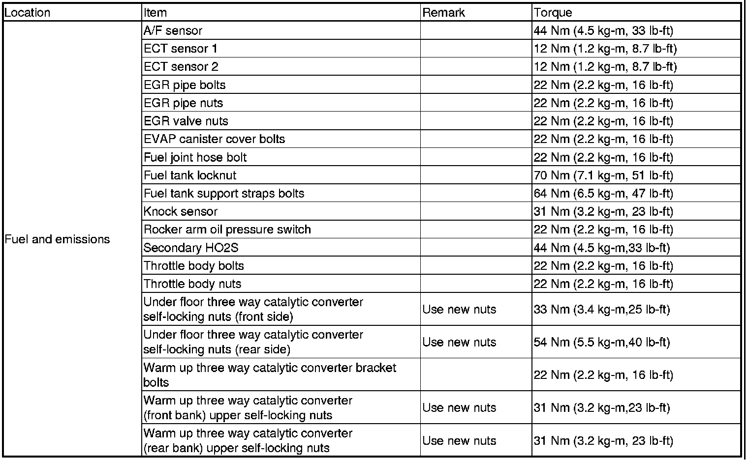 Refer to the Service Data for the bolts/nuts not indicated here.