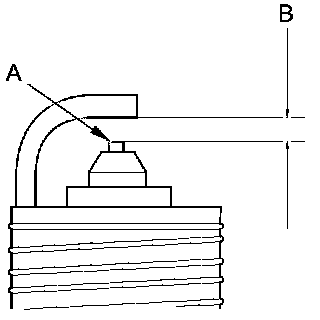 4. Replace the plug at the specified interval, or if the center electrode (A) is rounded, or if the spark plug gap (B) is out of specification. Use only the spark plugs listed.