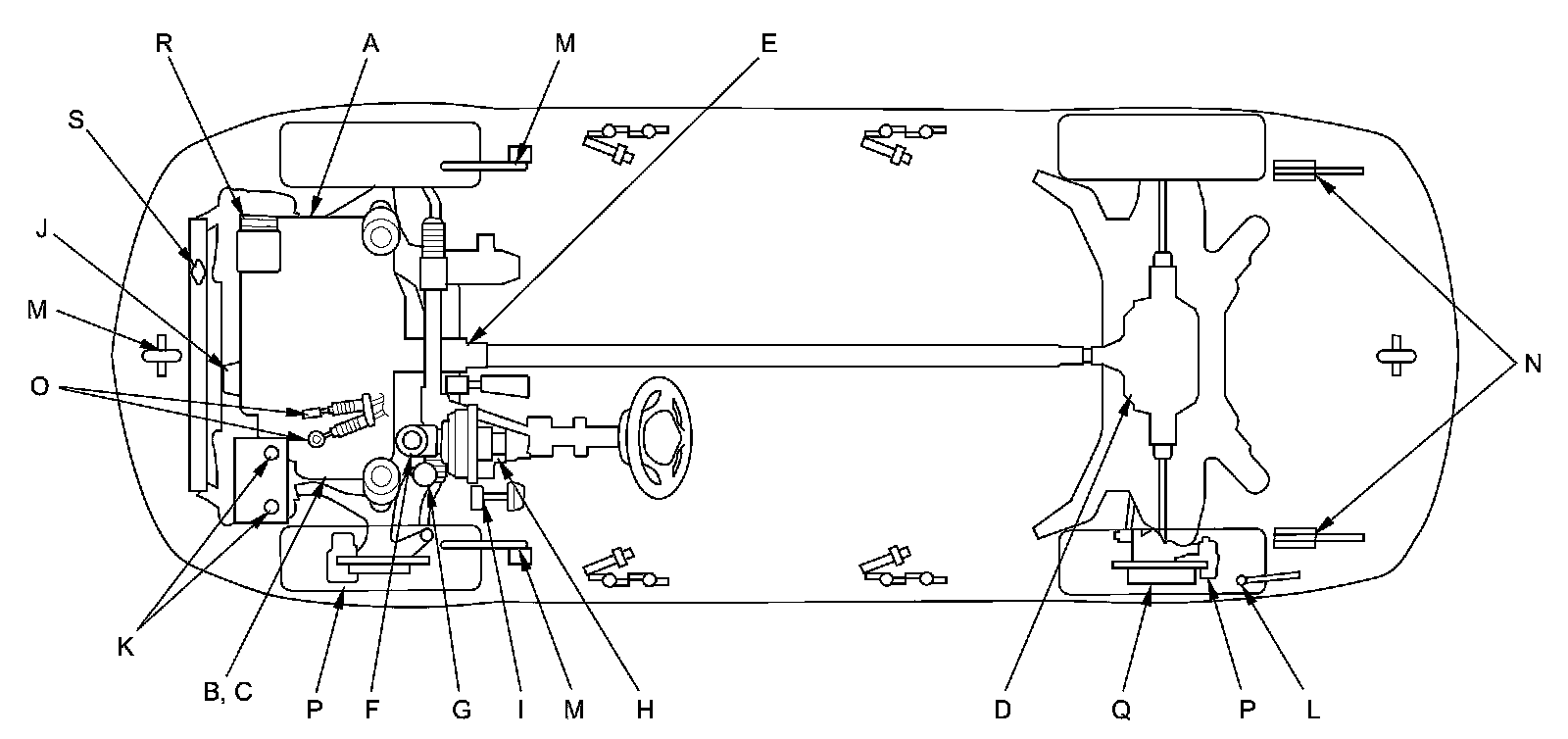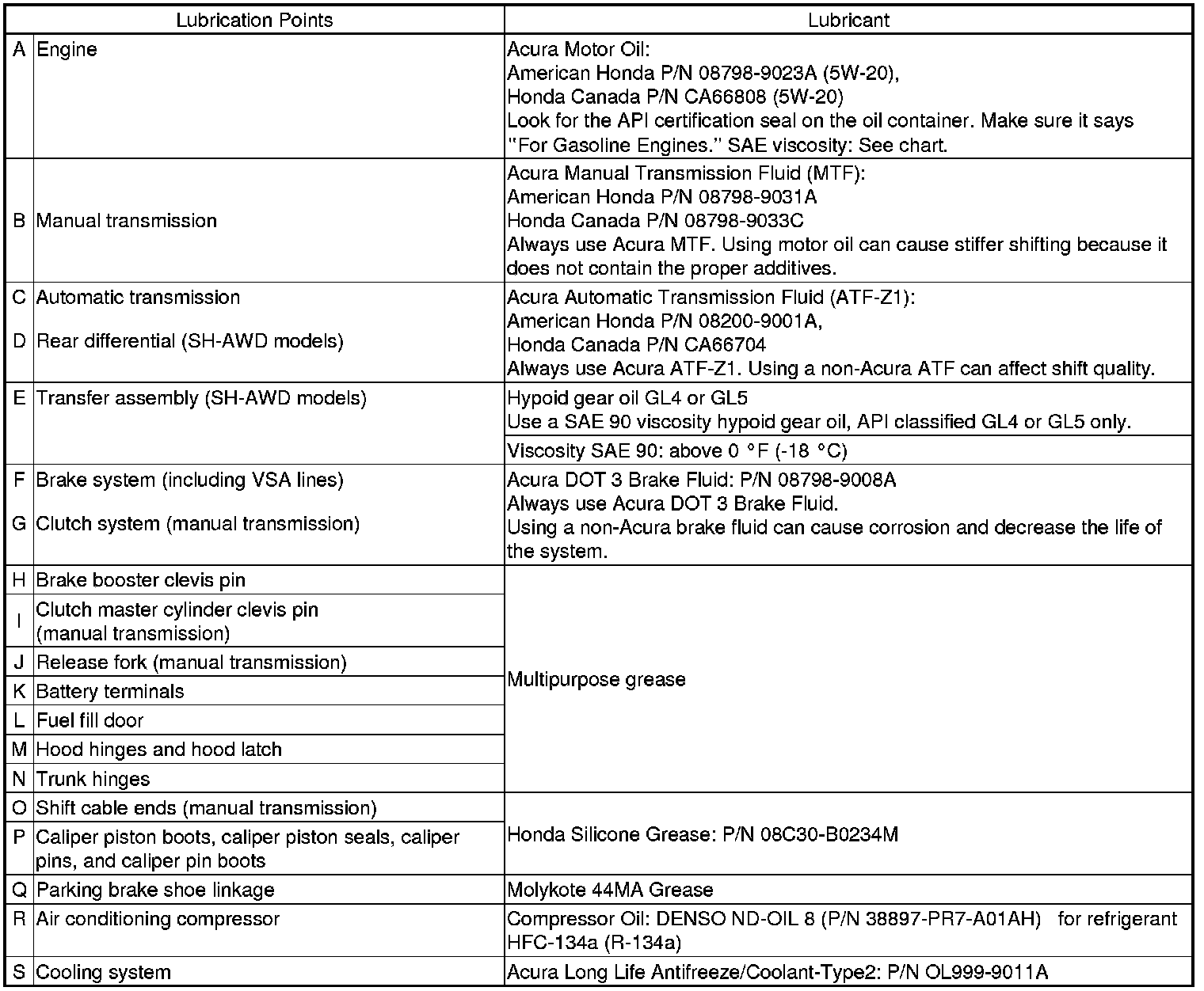 - Lubricate the following areas using the recommended lubricants and fluids.