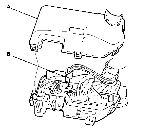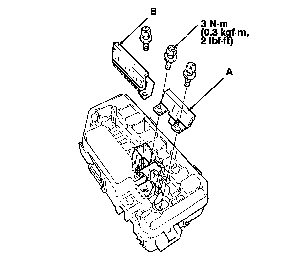 3. Remove the under-hood fuse/relay box (C) from the bracket.