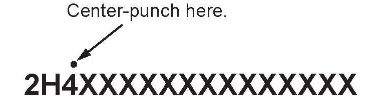 2. Center-punch a completion mark above the third character of the engine compartment VIN: