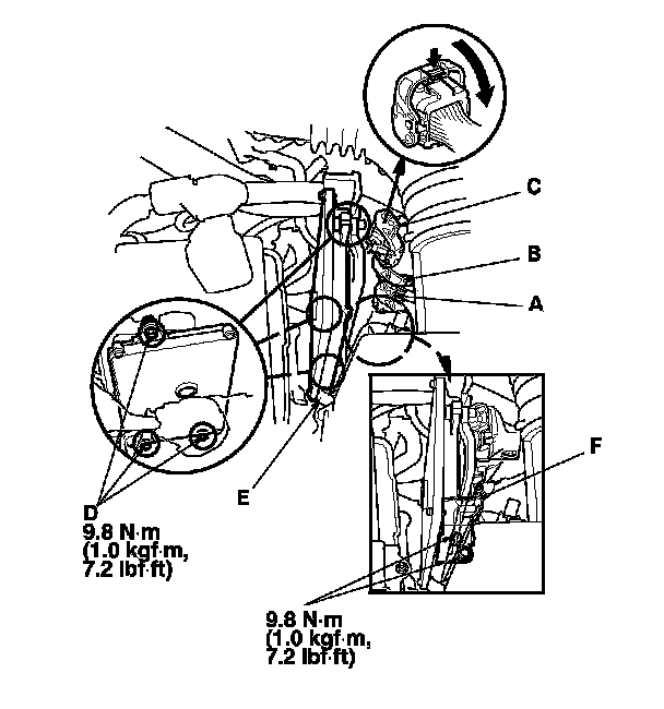 - Canada model: When disconnecting the ECM/PCM connectors, remove the ECM/PCM subbracket (F).