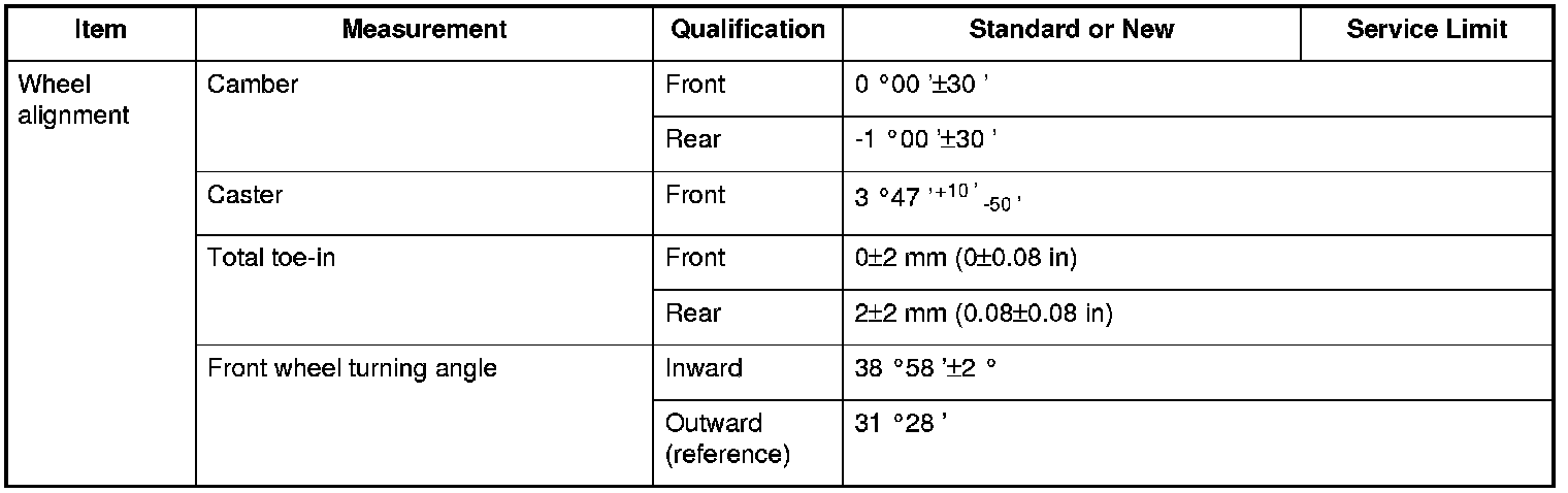 Wheel alignment Specifications