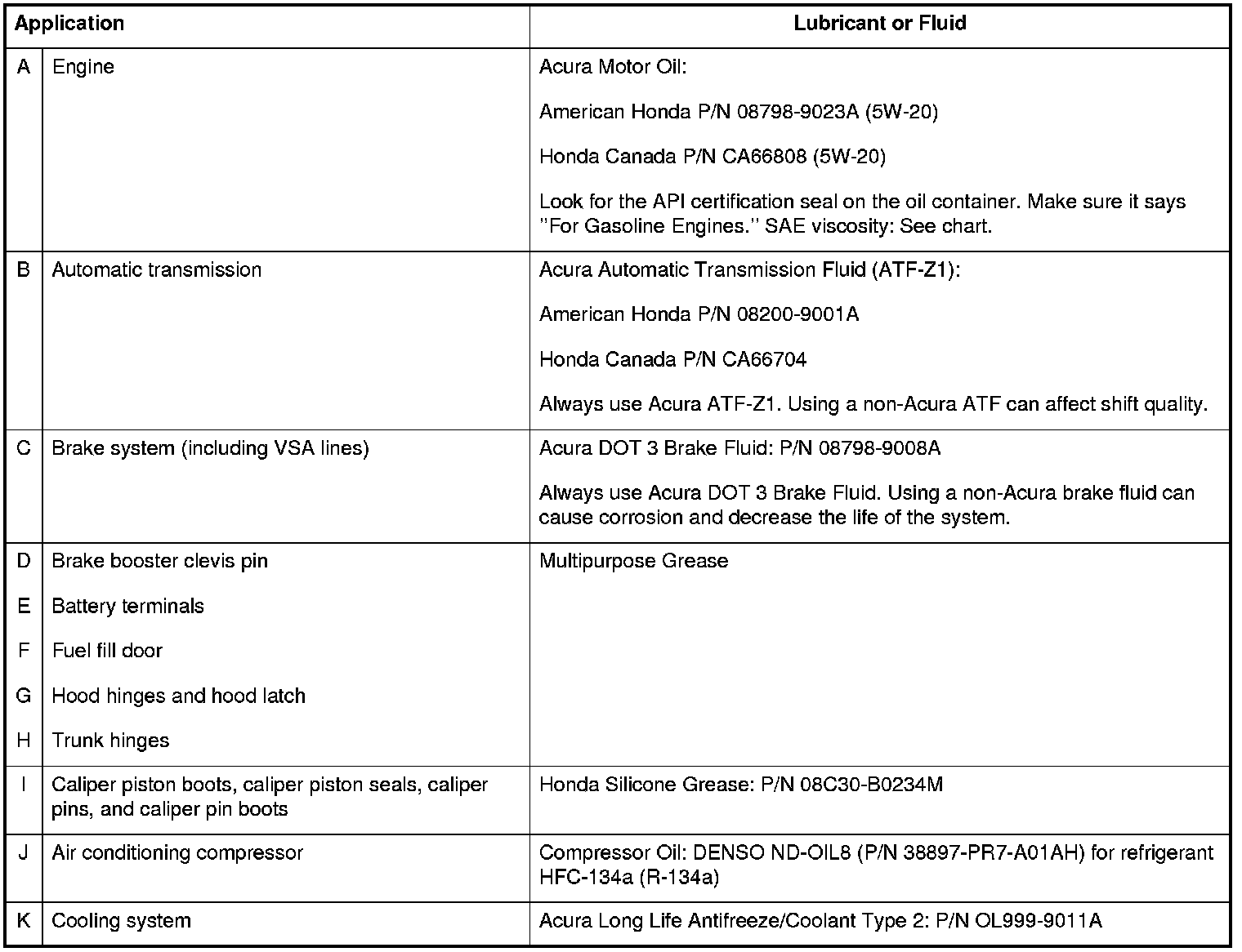 Home >> Acura >> 2010 >> TSX V6-3.5L >> Repair and Diagnosis >> Maintenance >> Fluids >> Specifications