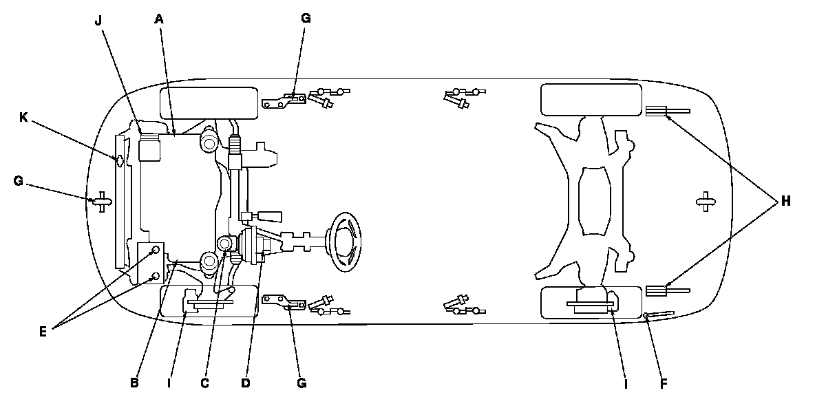 - Lubricate the following areas using the recommended lubricants and fluids.