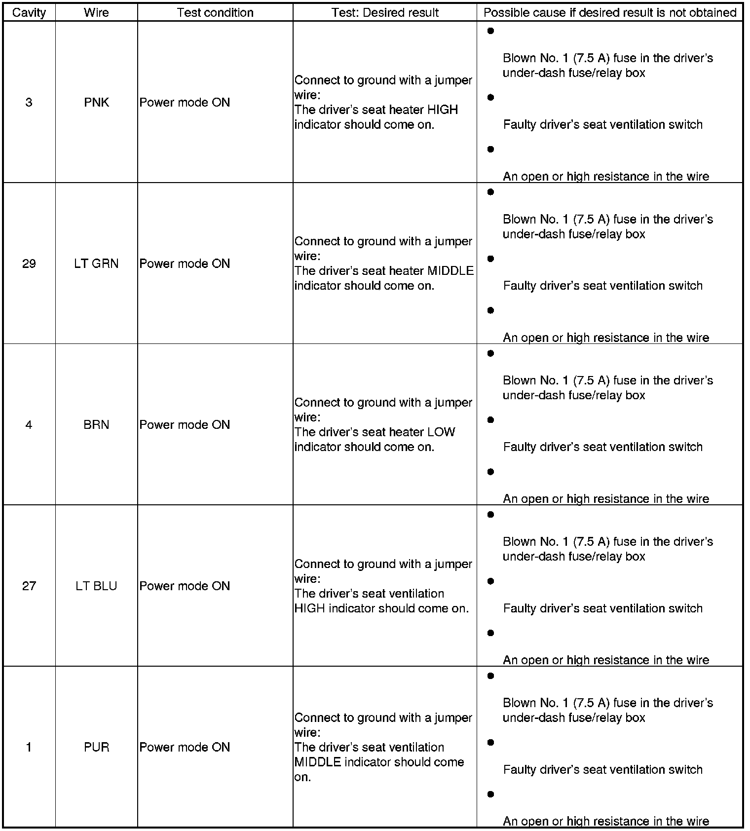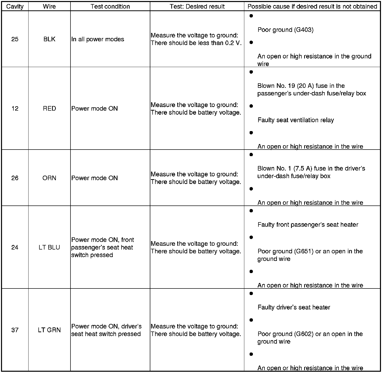 NOTE: Before testing, check the No. 2-4 (AS F/B OPTION) (40 A) fuse in the under-hood fuse box, the No. 16 (7.5 A) fuse in the driver's under-dash fuse/relay box, and the No. 19 (20 A) fuse in the passenger's under-dash fuse/relay box.
