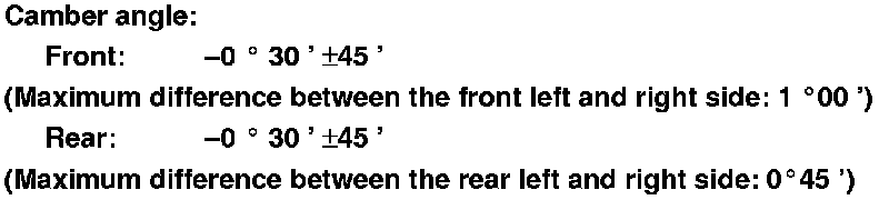 - If the measurement for the front camber is not within the specification, go to front camber adjustment.