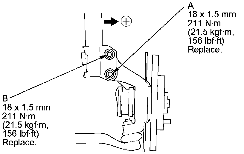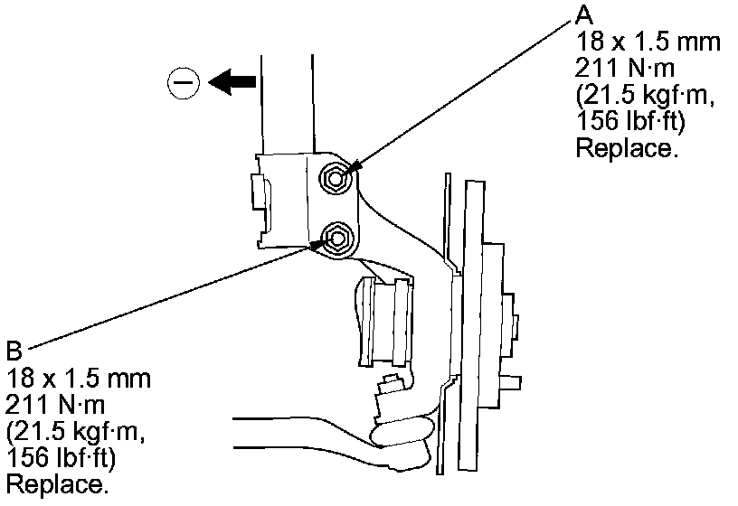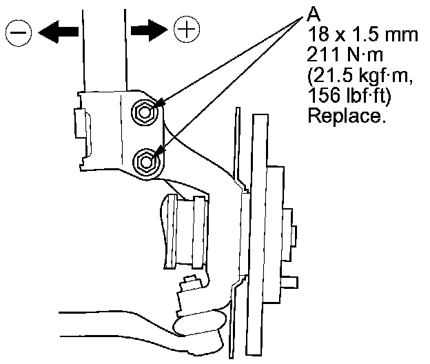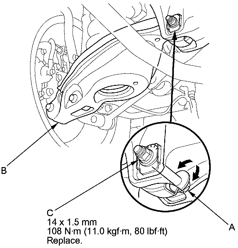 3. Hold the adjusting bolt (A) on lower arm B, and remove the self-locking nut (C).