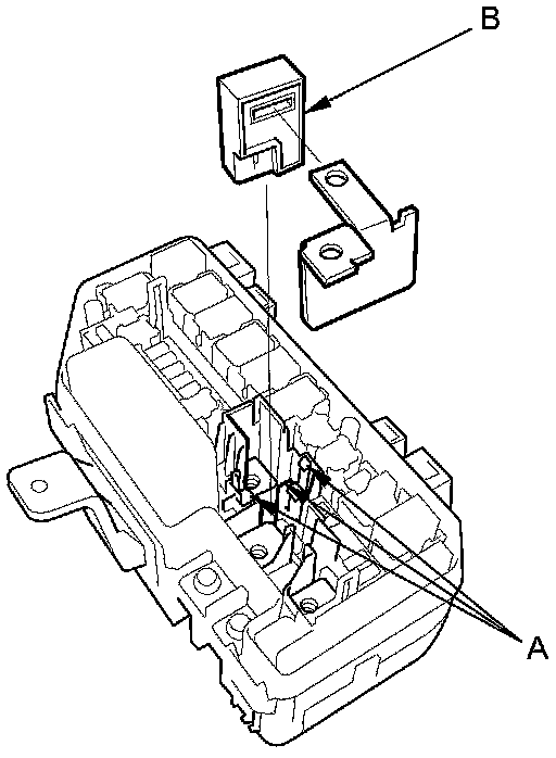 1. Remove the under-hood fuse/relay box Under-Hood Fuse/Relay Box Removal and Installation.